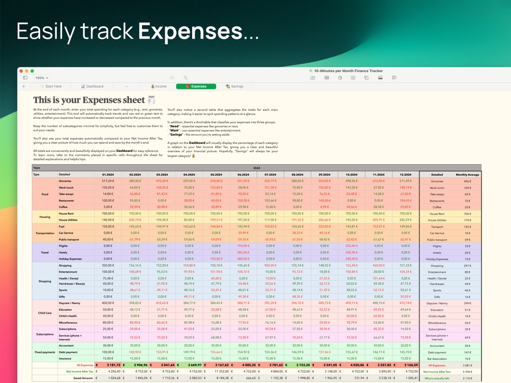- No over-complicated categories: Say goodbye to spending hours logging irrelevant details. This tracker has streamlined, human-created categories that make logging your expenses fast and easy.